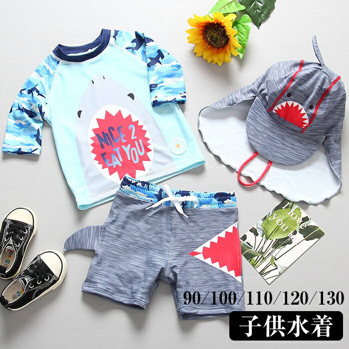 子供水着 男の子 子供 こども 男 男児 子供用 帽子付け セット スイムパンツ UVカット 日焼け防止 ラッシュガードセット ベビー水着 キッズ水着 水着 みずぎ 長袖 ブルー ライオン 模様 かわいい ポリエステル 海水浴 練習用 温泉 水遊び プール キャップ付き
