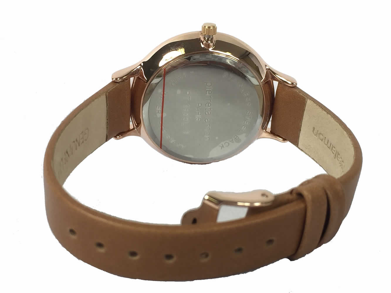 商品詳細ブランドPierre Talamon ピエール・タラモン商品番号PT-1500L-2カラー文字盤:ピンクゴールドベルト:ブラウン素材ケース:ステンレス&真鍮ベルト:レザーガラス:ミネラルクリスタル防水日常生活防水その他 クォーツ、カレンダー付 サイズケース:縦36×横36×厚さ9mmベルト腕周り:最小160〜195mmベルト幅:14mm重さ30g