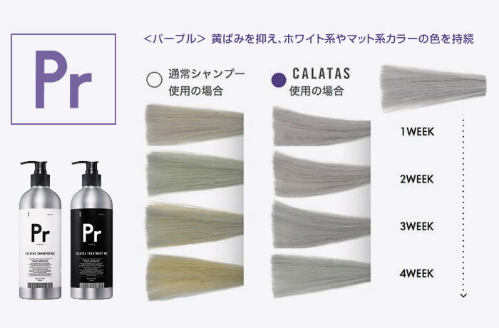 商品名 カラタス MH2+ パープル (Pr) シャンプー&トリートメント 詰め替えセット 内容量 800mL & 800mL (詰め替え) 商品詳細 カラタス シャンプー・トリートメント NH2+ は、カラーケアをしながら 傷んだ髪を補修し、たっぷりの潤いを与えます。