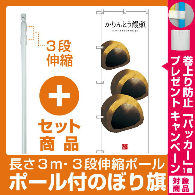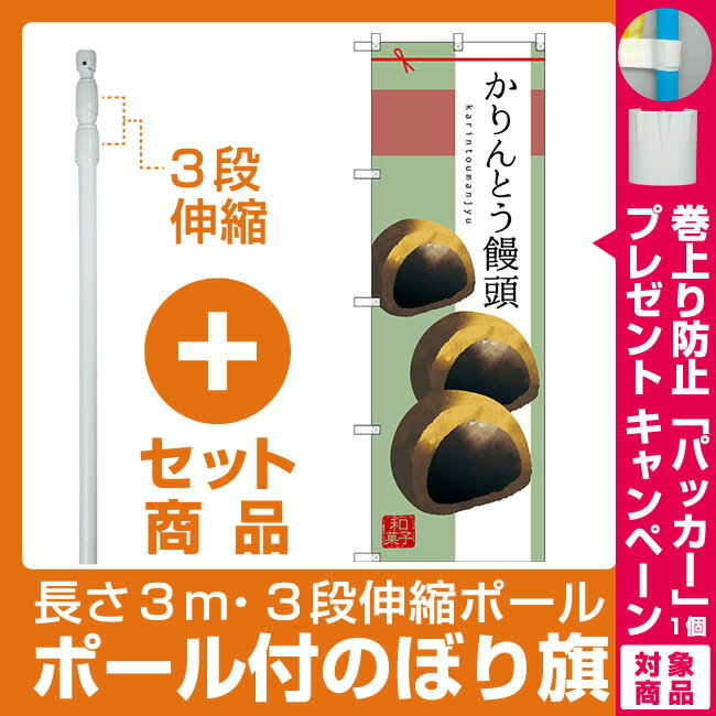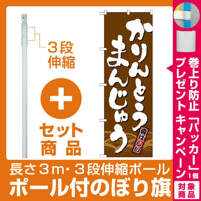 【セット商品】3m・3段伸縮のぼりポール(竿)付 のぼり旗 かりんとうまんじゅう (21385)