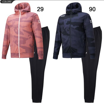 スウェット 上下セット メンズ レディース ヒュンメル Hummel サーモスウェット 裏起毛 ジップアップ パーカー ジャケット ロングパンツ 上下組 スポーツ トレーニング ウェア スエット カモ柄 迷彩 保温 サッカー フットサル 普段使い スリムフィット/HAP8213-HAP8212P