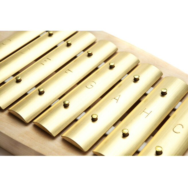 厚みのある真鍮製の鉄琴と重量感のあるしっかりした台座からなるアウリス社のグロッケン。