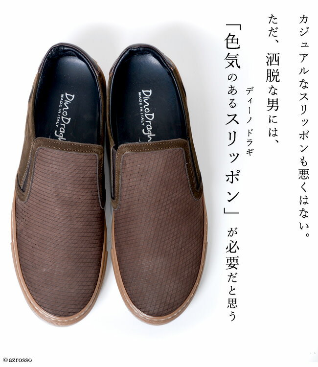 選択肢1:ネロ ブラック(黒) ティモーロブラウン(茶色)選択肢2:40(26cm) 41(26.5cm) 42(27cm-27.5cm) 43(28cm-28.5cm)大人の男性のカジュアルな革靴として人気のスリッポンに、イタリアブランド「Dino Draghi/ディーノ ドラーギ 」から、洒脱なメンズのための色気のあるレザー スリッポンが登場。